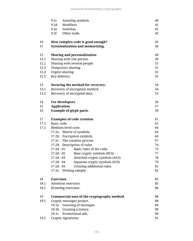 Soon I hope to find time to begin writing on calligraphic code. So far, as the first article/post on the topic, I share here some excerpts from the book I wrote on advanced handwriting cryptography — you can download it for free by the links below, after the examples.
